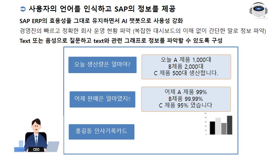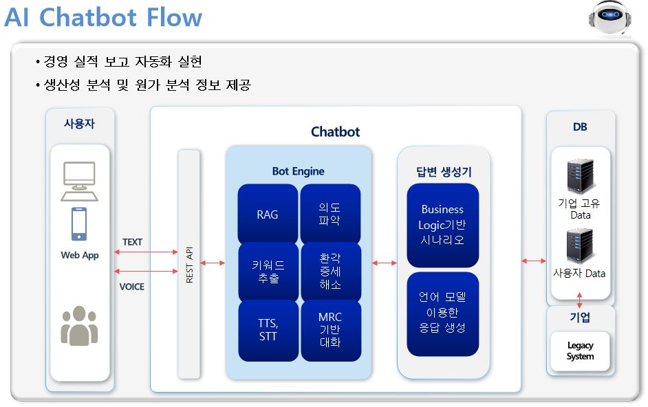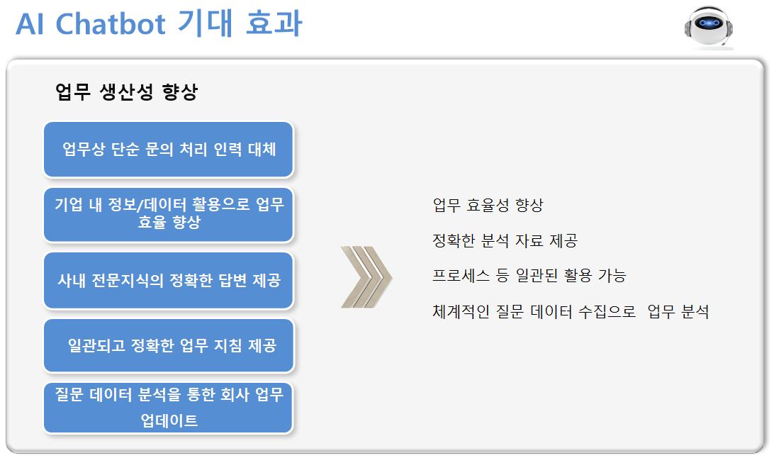 고정된 문장과 선택형 쳇봇이 아닌 기업내 정제된 자료 기반의 자연스러운 대화 가능한 쳇봇